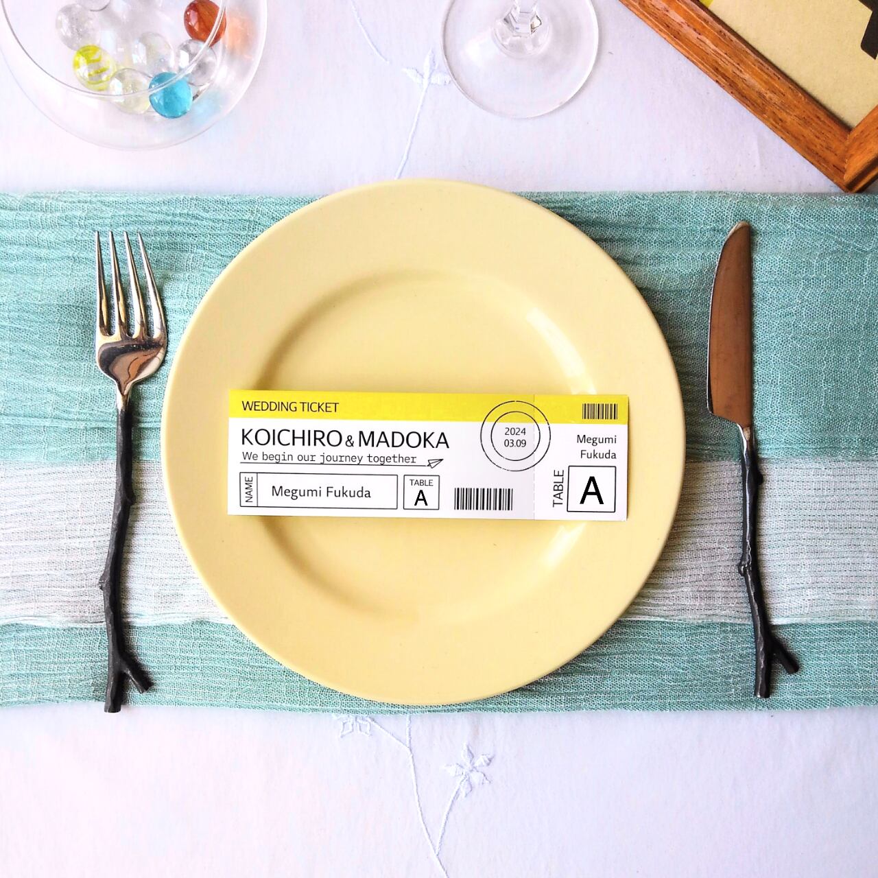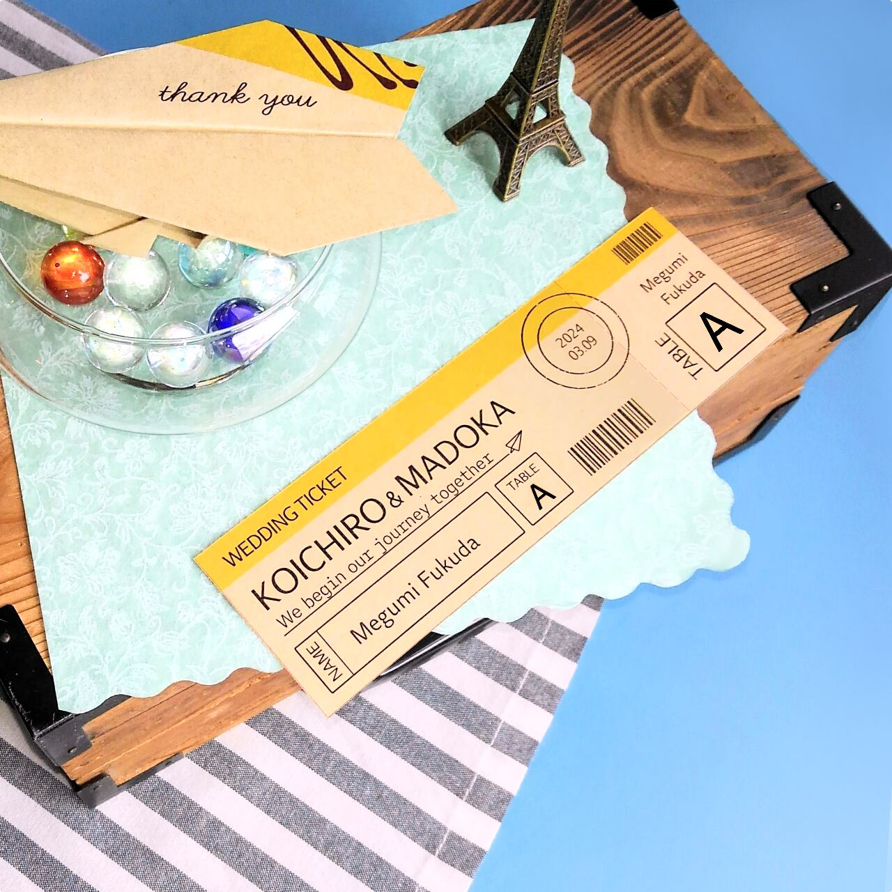 お二人の新しい旅立ちを演出する、ユニークでおしゃれな搭乗券風エスコートカードです。