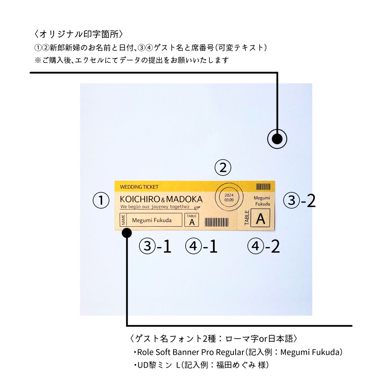 海外でも人気のボーディングチケット風デザイン。オリジナル印字+選べる台紙でより特別感ある仕上がりに。