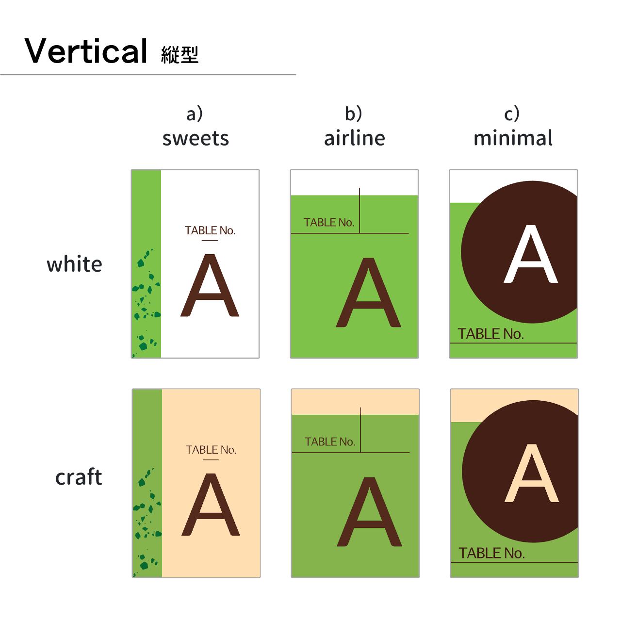 選べるデザイン3種 テーブルナンバー ピスタチオ/縦・横型 クラフト・白紙対応 5枚/ウェディング
