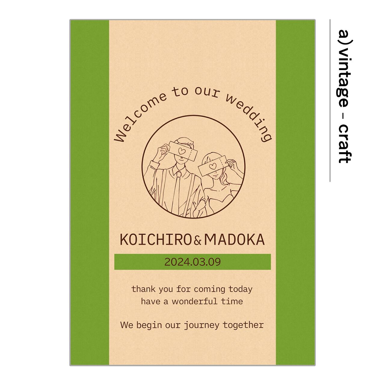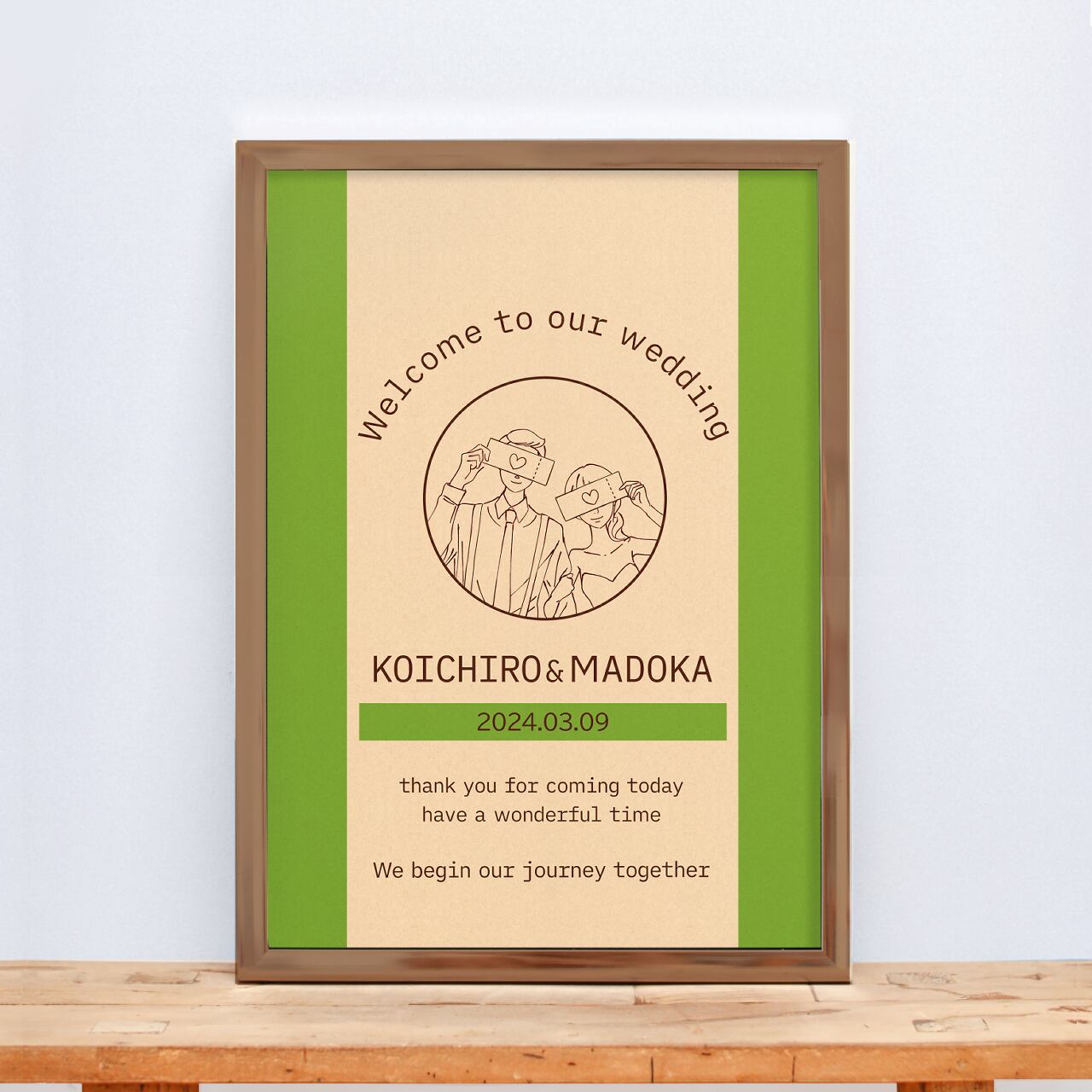ウェルカムボード ペアポーズ ピスタチオ/クラフト・白紙 日付・名入れ対応 デザイン4種/ウェディング
