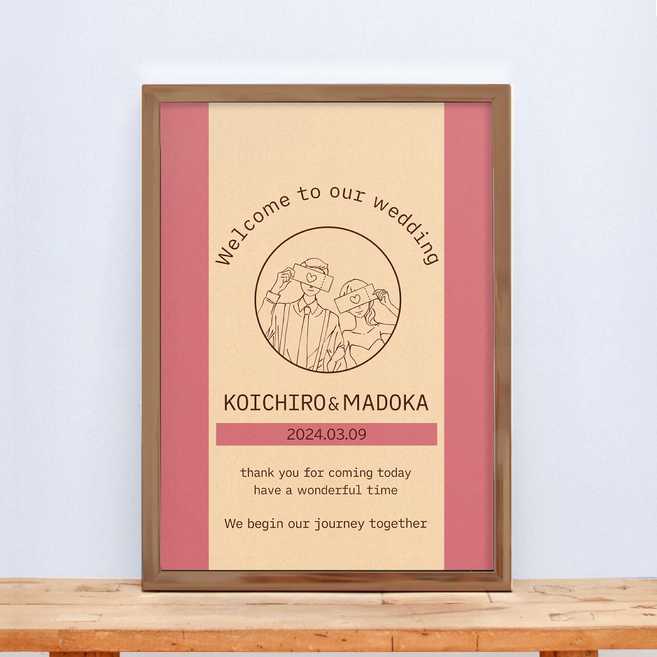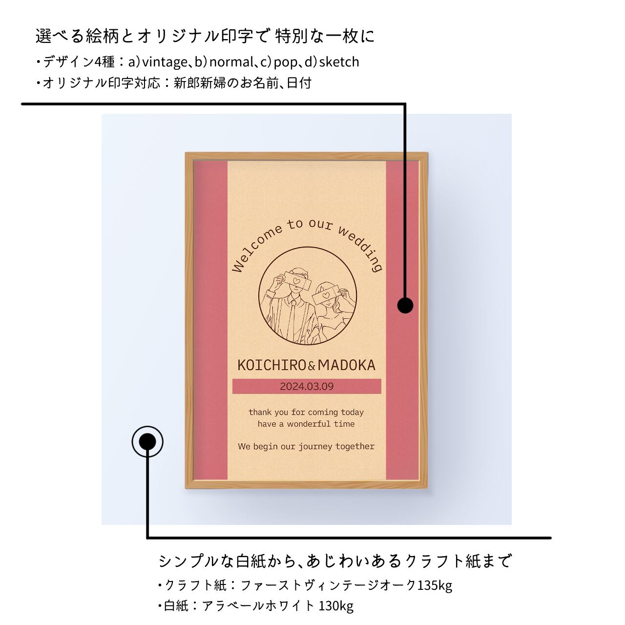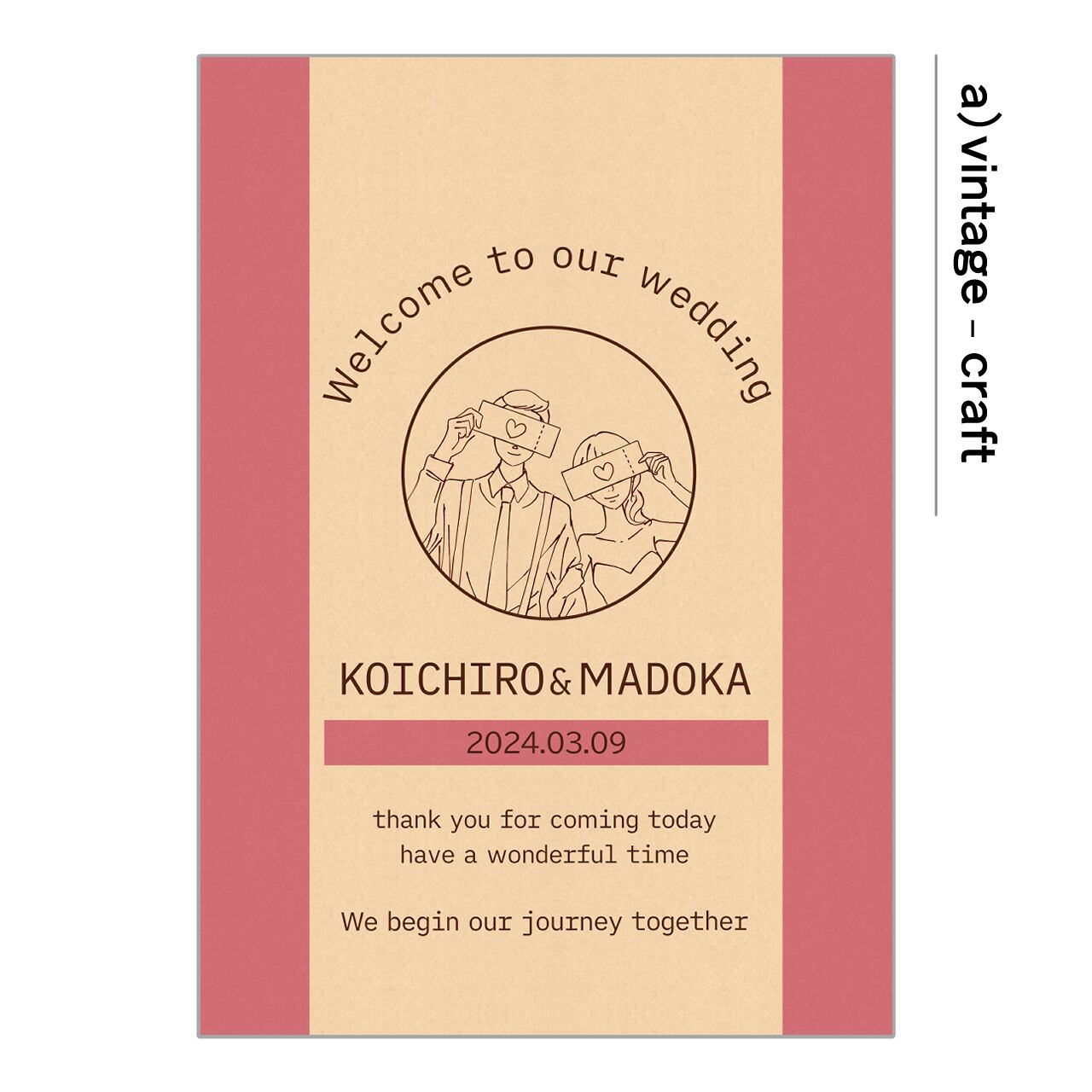 ウェルカムボード ペアポーズ クランベリー/クラフト・白紙 日付・名入れ対応 デザイン4種/ウェディング