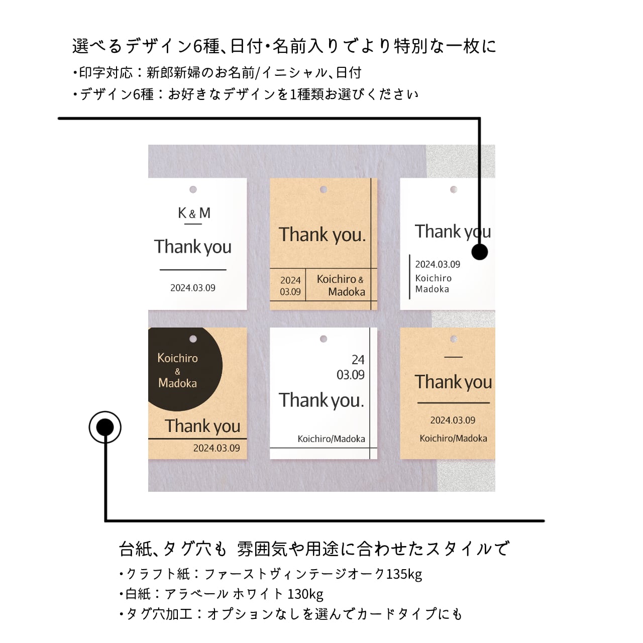 プチギフトや結婚式/二次会などに、洗練された佇まいが目を惹くミニマルデザインのサンキュータグです。