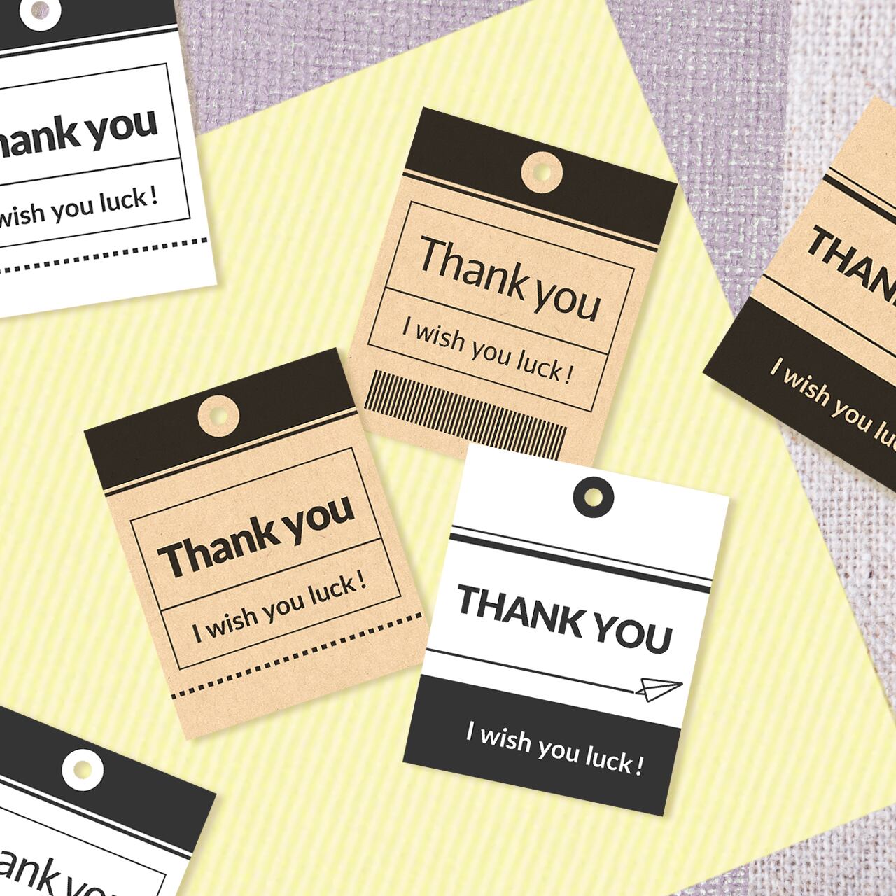 旅行のラゲッジタグをイメージしたデザインに、飛躍を願う“ I wish you luck ”のメッセージをのせたシンプルタグです。
